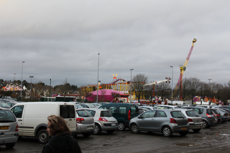 Parking du parc des expositions de Penfeld. La foire se situe d'ailleurs en hauteur, sur une petite colline. De quoi incrémenter le vide à bord du New World. x)