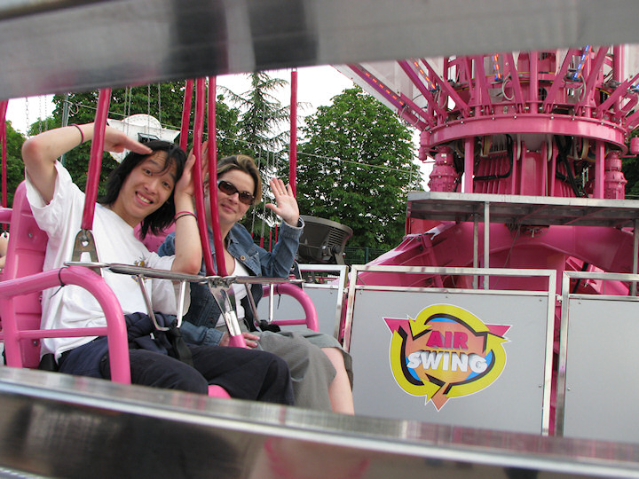 Puis ce sera Nath et moi (parce que ma chérie ne supporte pas prendre le trop plein d'air en hauteur, juste pour cette fois-ci, j'espère) qui auront ridé Air Swing, à la suite. En tout cas, ça aurait été le seul moment frais qu'on aura eu de toute la foire ! 😊 Une bonne vitesse à 20m de hauteur, quel pied !