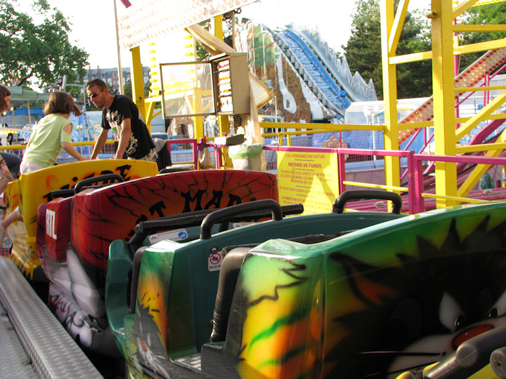 Pas de thrill rides juste après ça… On se balade tranquille pour calmer. Après avoir fait le tour de la Foire, on s'enchaîna tous les quatre : Crazy Mouse ! La spinning wild mouse de Zamperla ! 😊 Je vous en ai même ramené une on ride. Vous pourrez voir que notre mouse spinnait violemment aussi ! 😆 Mais c'est fun comme ça ! Ahah ! Bon, vu que ça spinnait, ça a doublé un chouya les effets ! 😆 Sadiques qu'on est ! 😜
