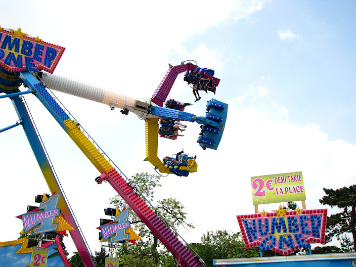 À la fin des glaces, détente à bord de la grande roue, qui tournait vite mais pour trous tours complet. Au moins, belle vue de la foire et de ses rides que je n'ai pas manqué de garder en souvenir. En tout cas, ça fait du bien de se détendre !