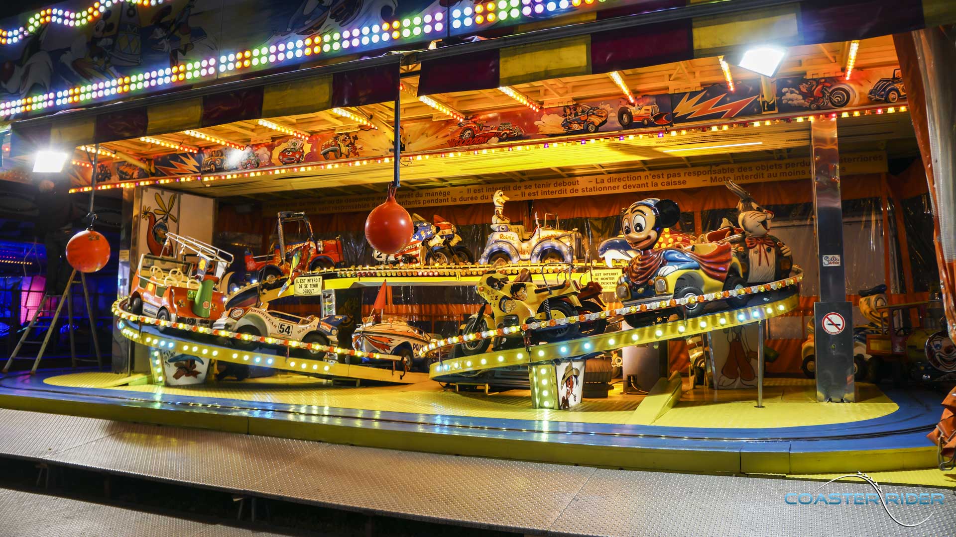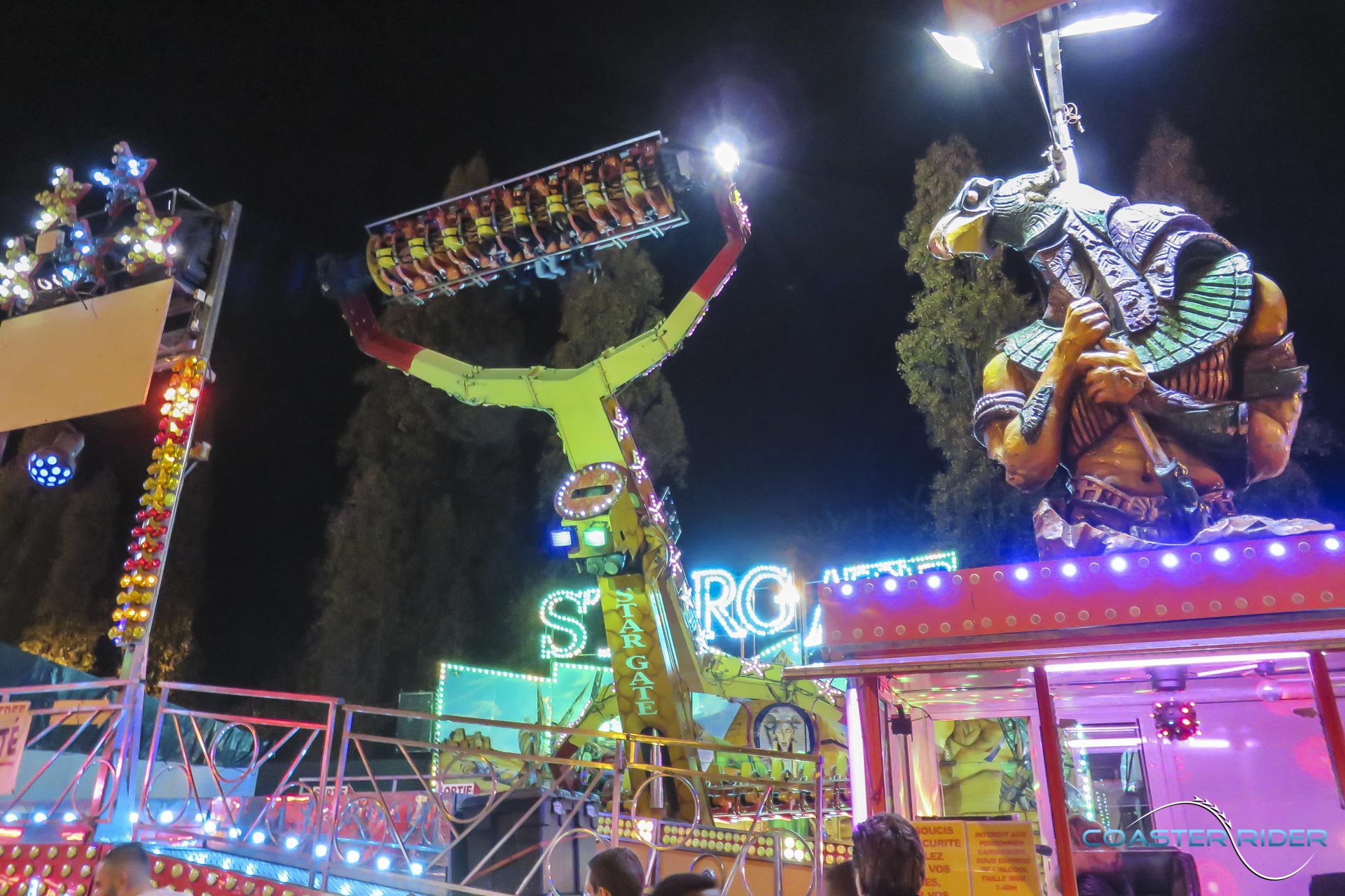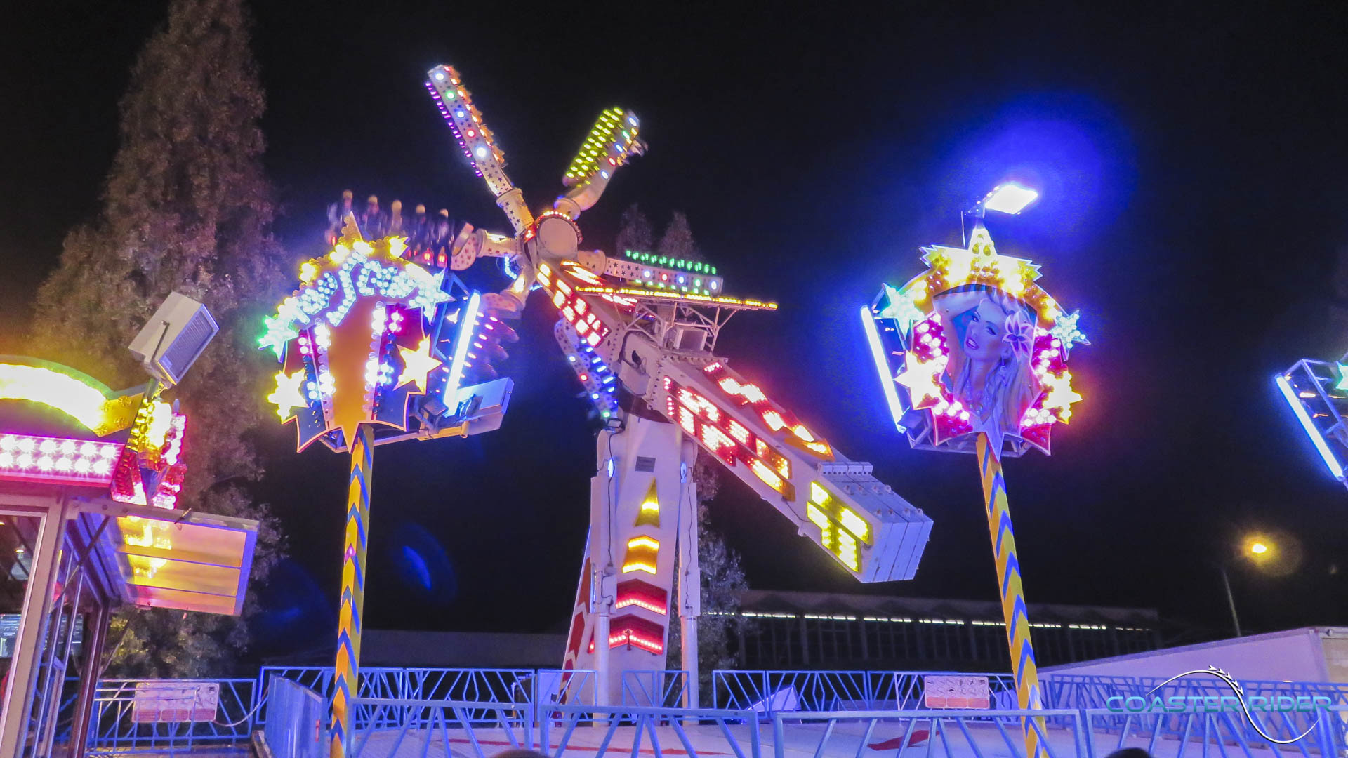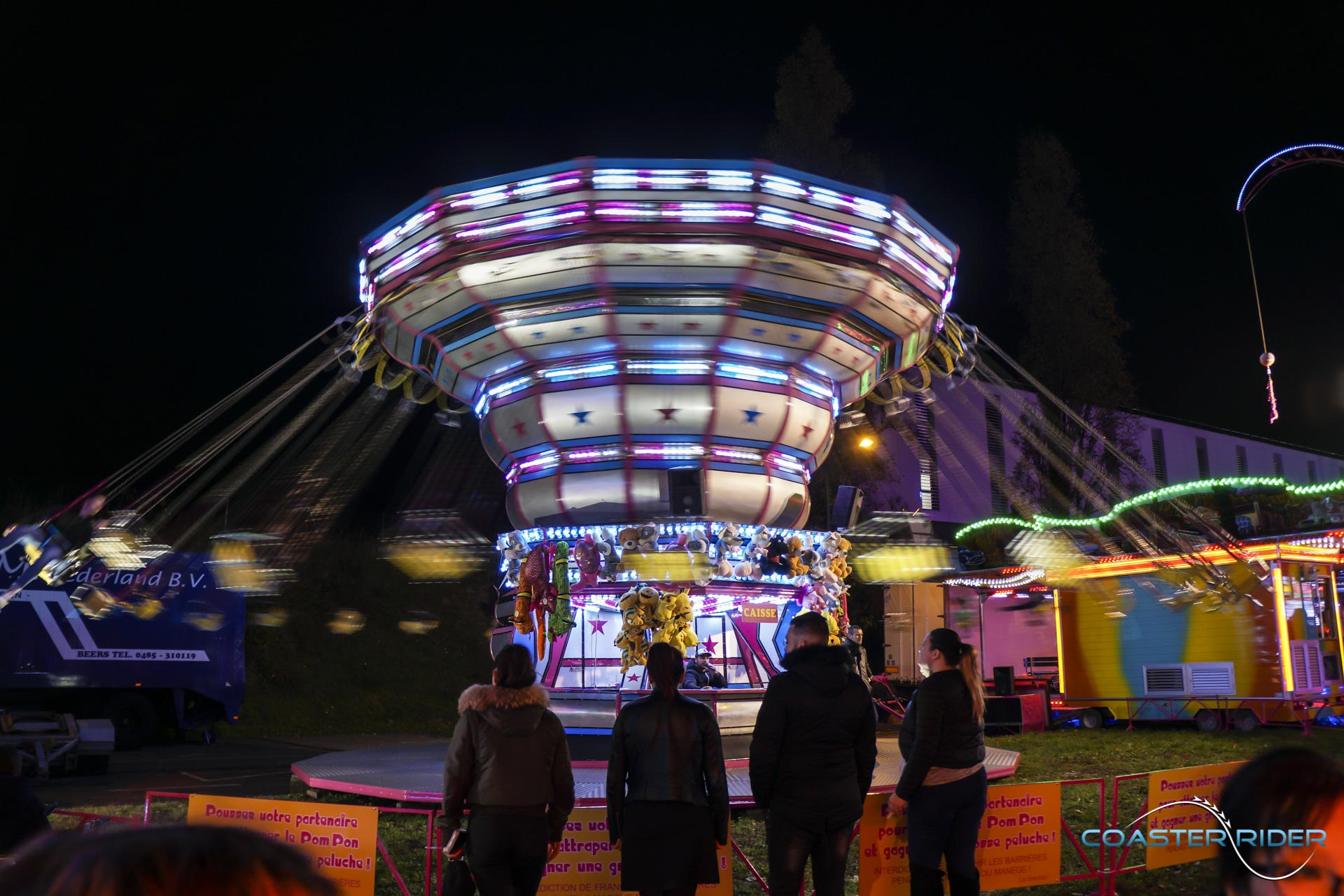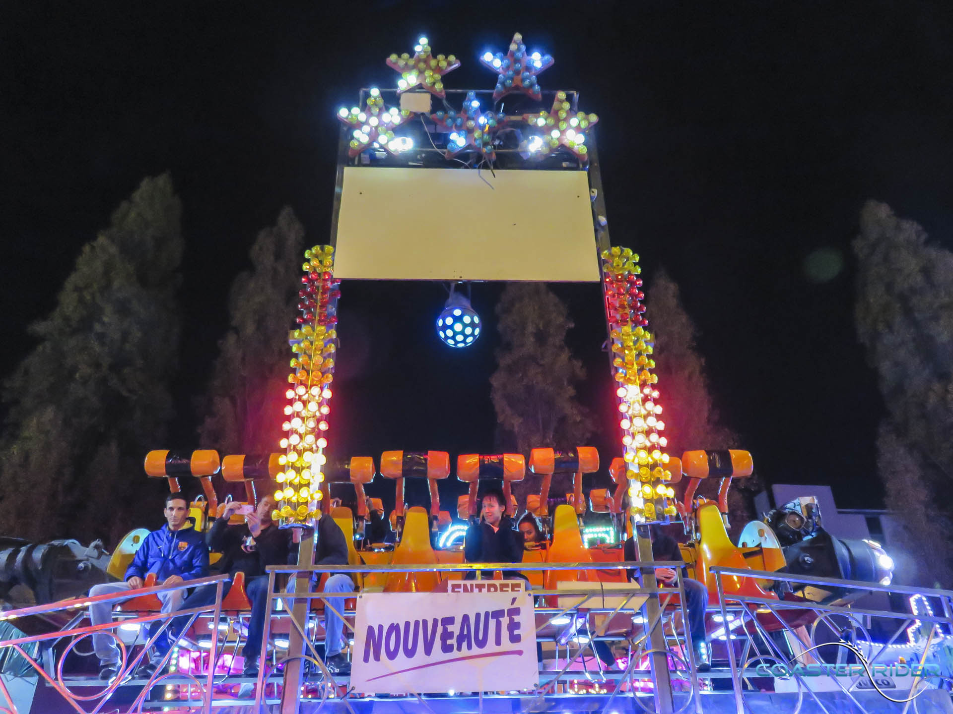 Très impressionnant à voir, les nacelles ne « flip » pas par gravité mais sont motorisées ! Le forain contrôle toutes les rotations du coup !