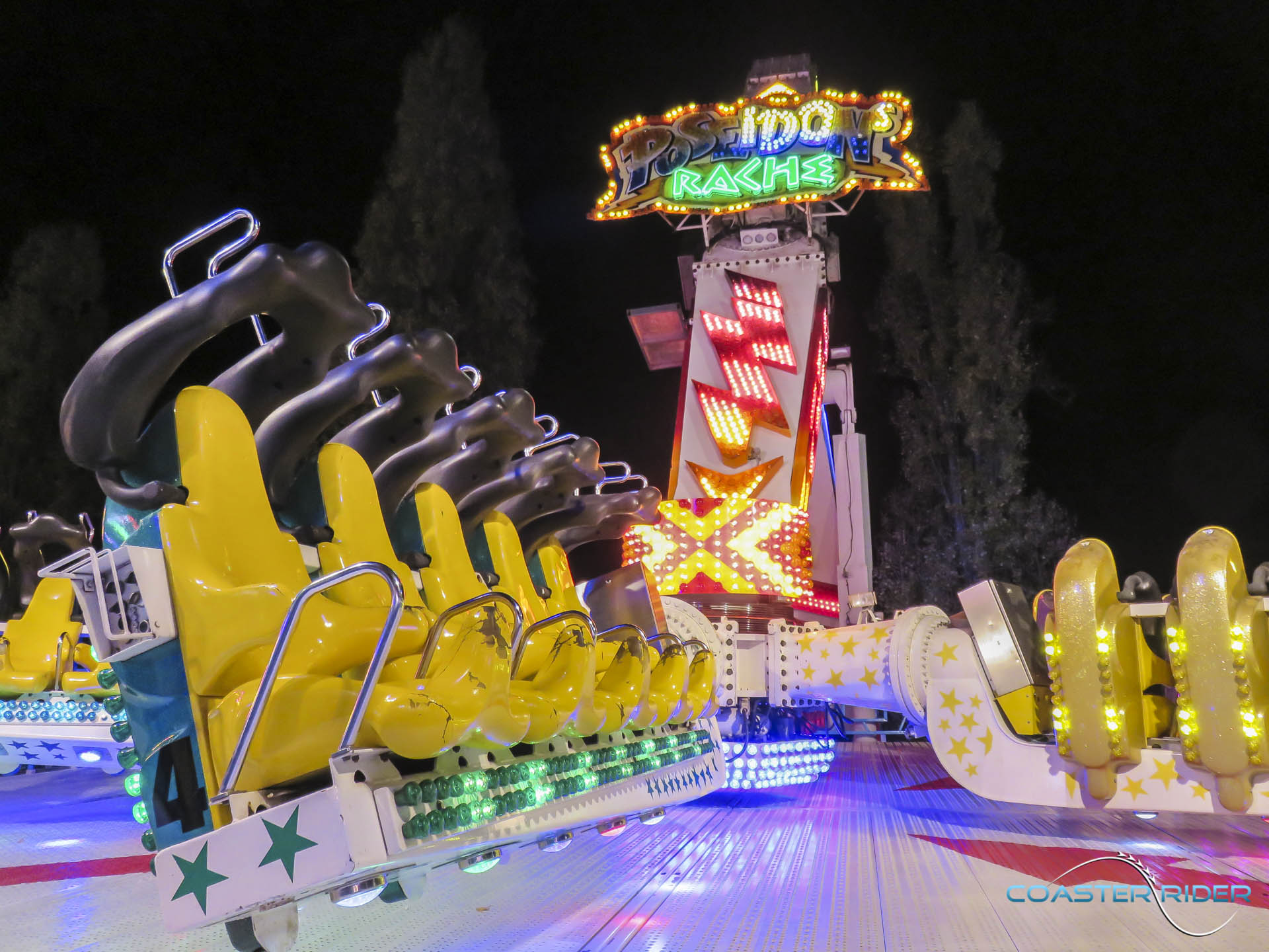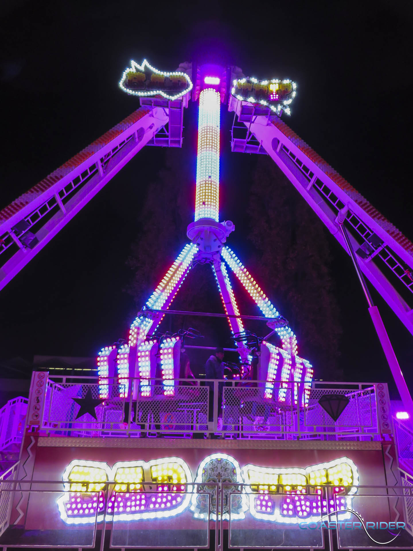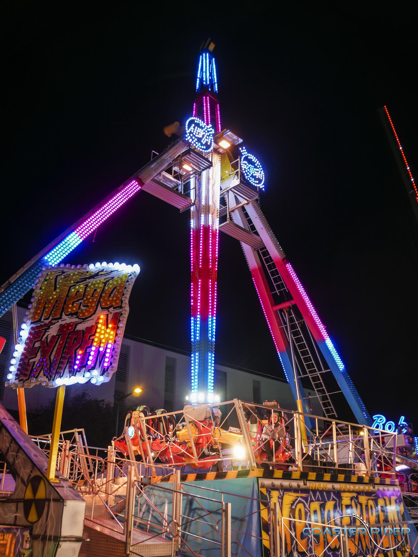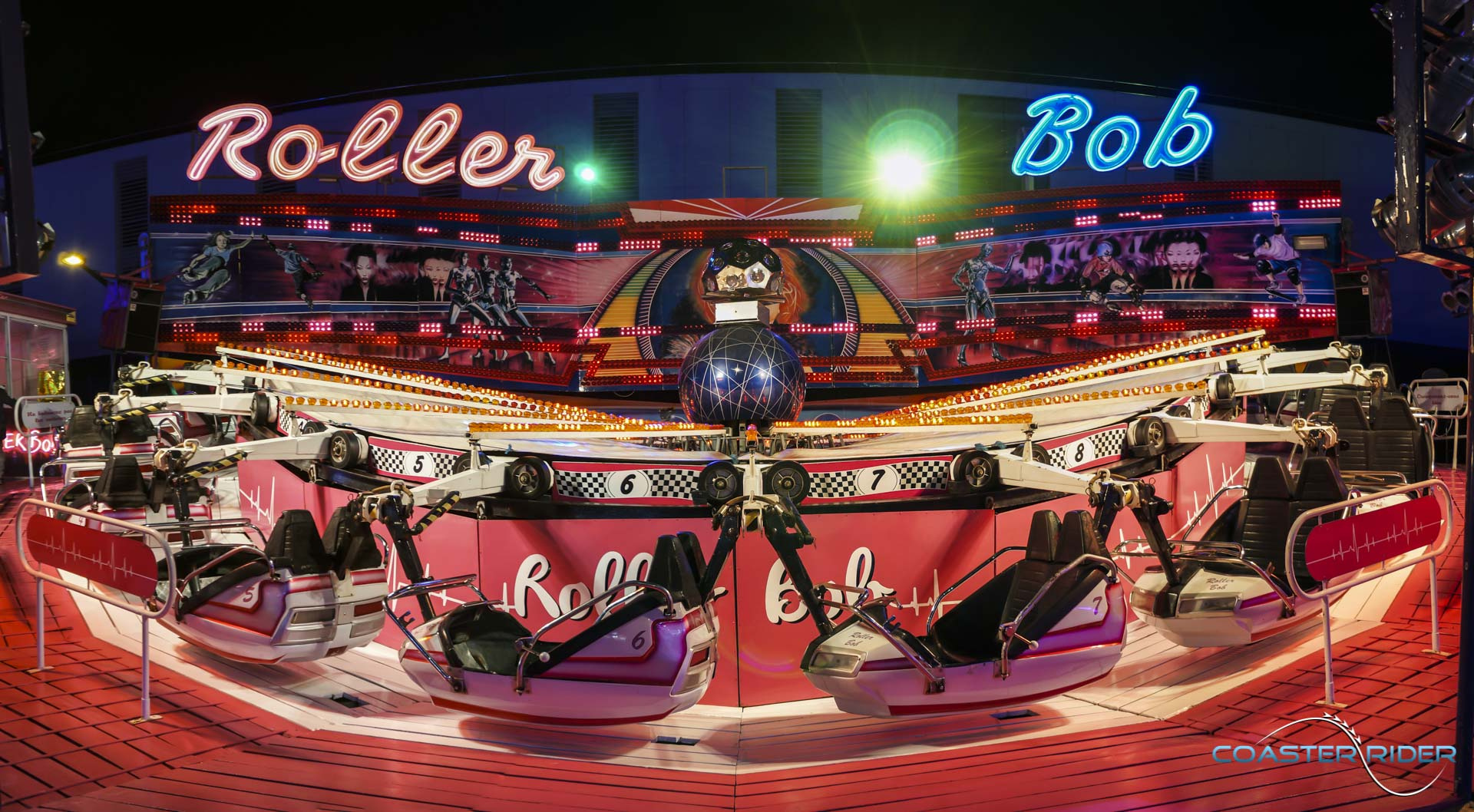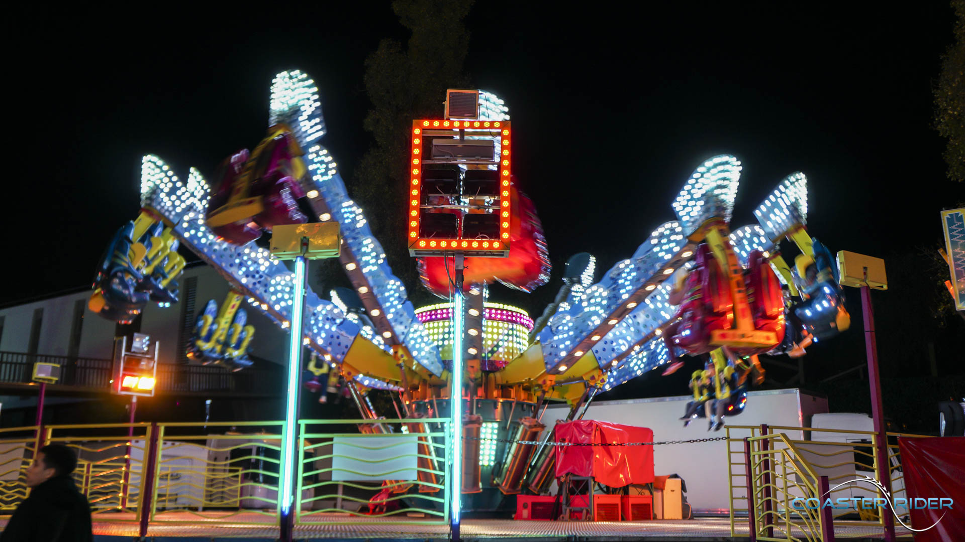 Très impressionnant à voir, les nacelles ne « flip » pas par gravité mais sont motorisées ! Le forain contrôle toutes les rotations du coup !