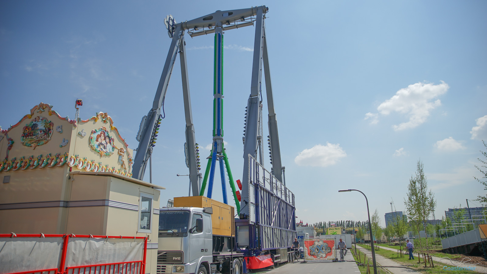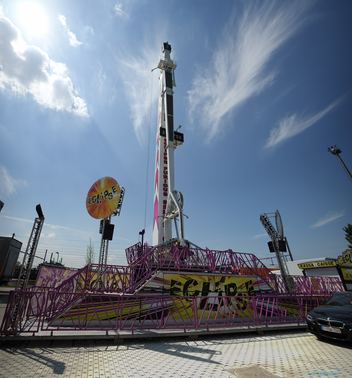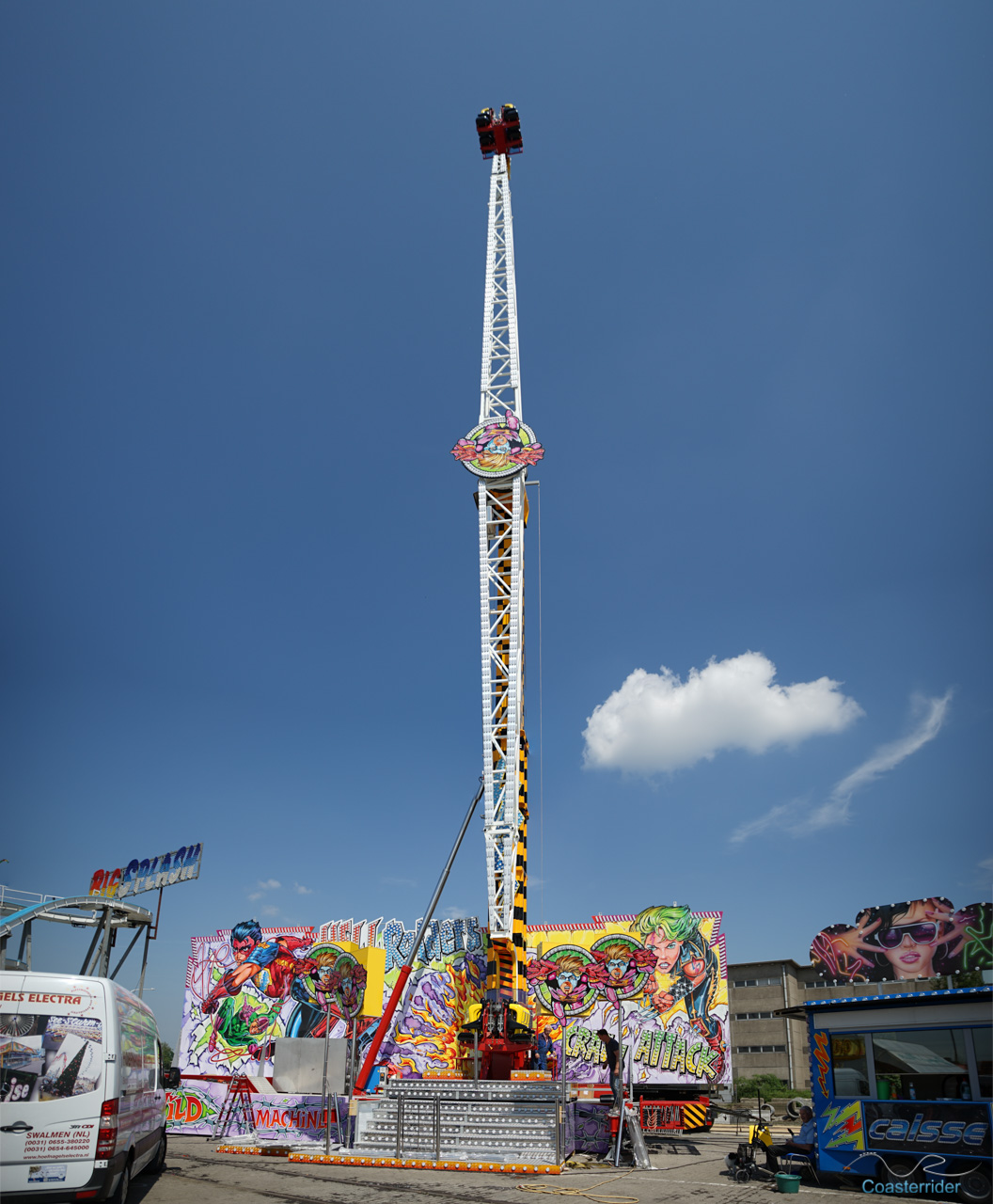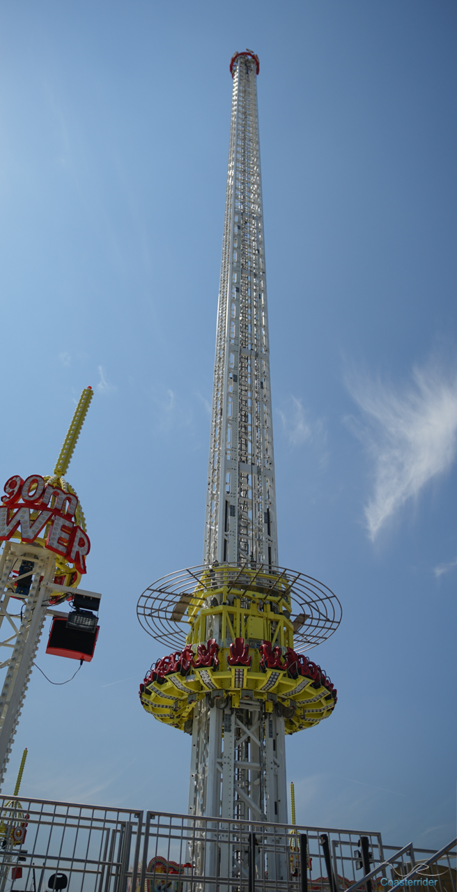 À Anvers (ou Antwerpen), ils voient les choses en grand ! Cette free fall tower de Fun Time semble vouloir faire de l'ombre à notre Skyfall locale avec 10 mètres de hauteur en plus ! 😛 C'est assez explicite dans son nom d'ailleurs (nom pas très original ceci dit). x)Alors Skyfall, qu'avez-vous à dire pour votre défense ? =]