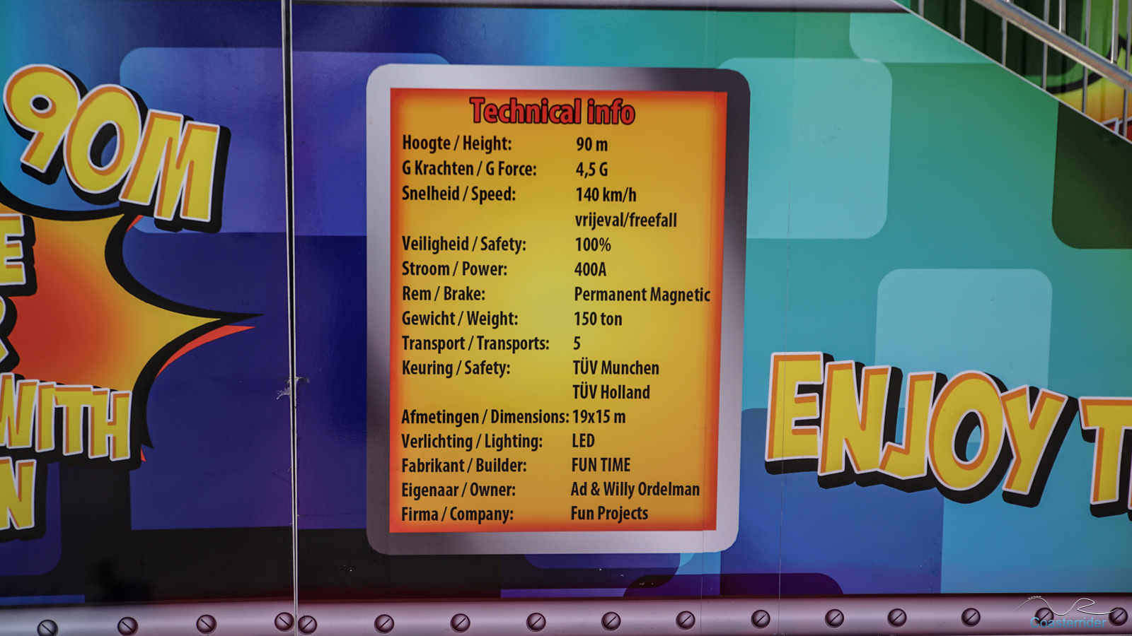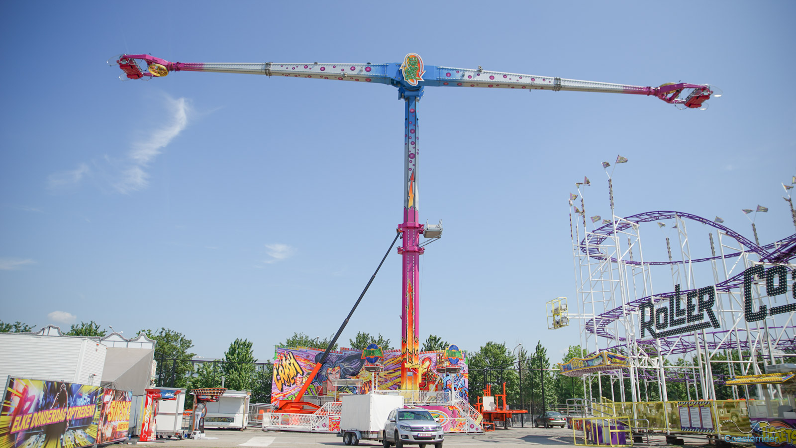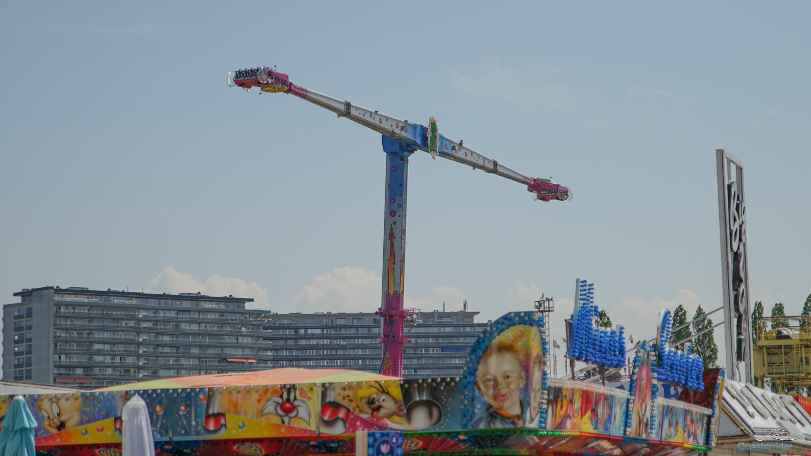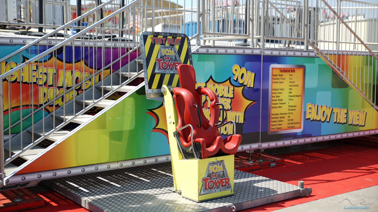 À Anvers (ou Antwerpen), ils voient les choses en grand ! Cette free fall tower de Fun Time semble vouloir faire de l'ombre à notre Skyfall locale avec 10 mètres de hauteur en plus ! 😛 C'est assez explicite dans son nom d'ailleurs (nom pas très original ceci dit). x)Alors Skyfall, qu'avez-vous à dire pour votre défense ? =]