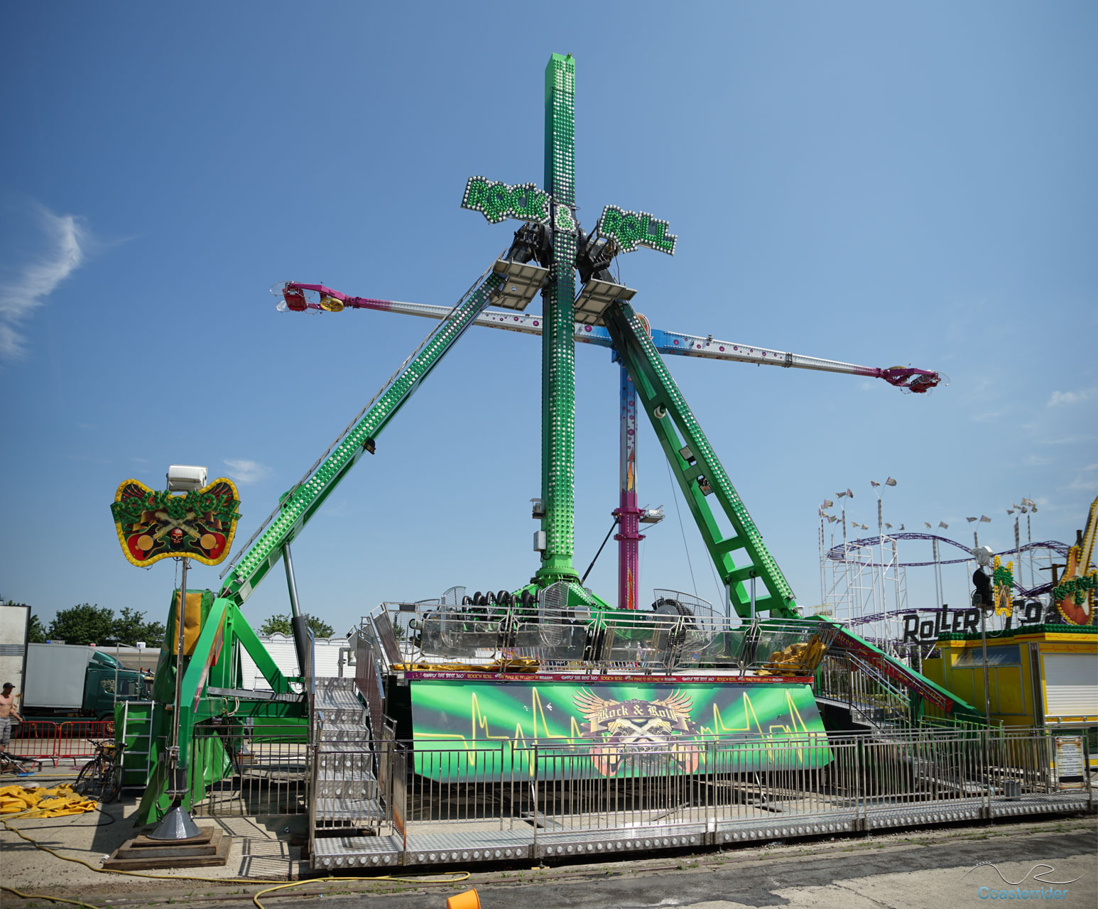 C'est un peu la raison du stop, je l'admets. 😀 Même si au final, je pouvais ravaler ma joie. x)Je ne présente pas davantage le XXL de KMG, cette balançoire géante si jouissive à faire, bien mieux que le Mistral de Mondial Rides (Power Maxxx). 😉 Aaah, j'aurais tant voulu remonter dessus avant de repartir, mais ce sera pour une autre fois j'imagine. x)