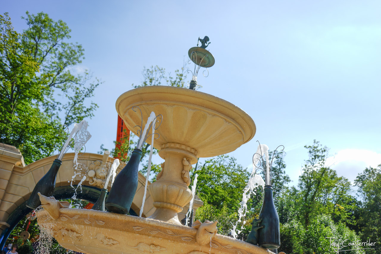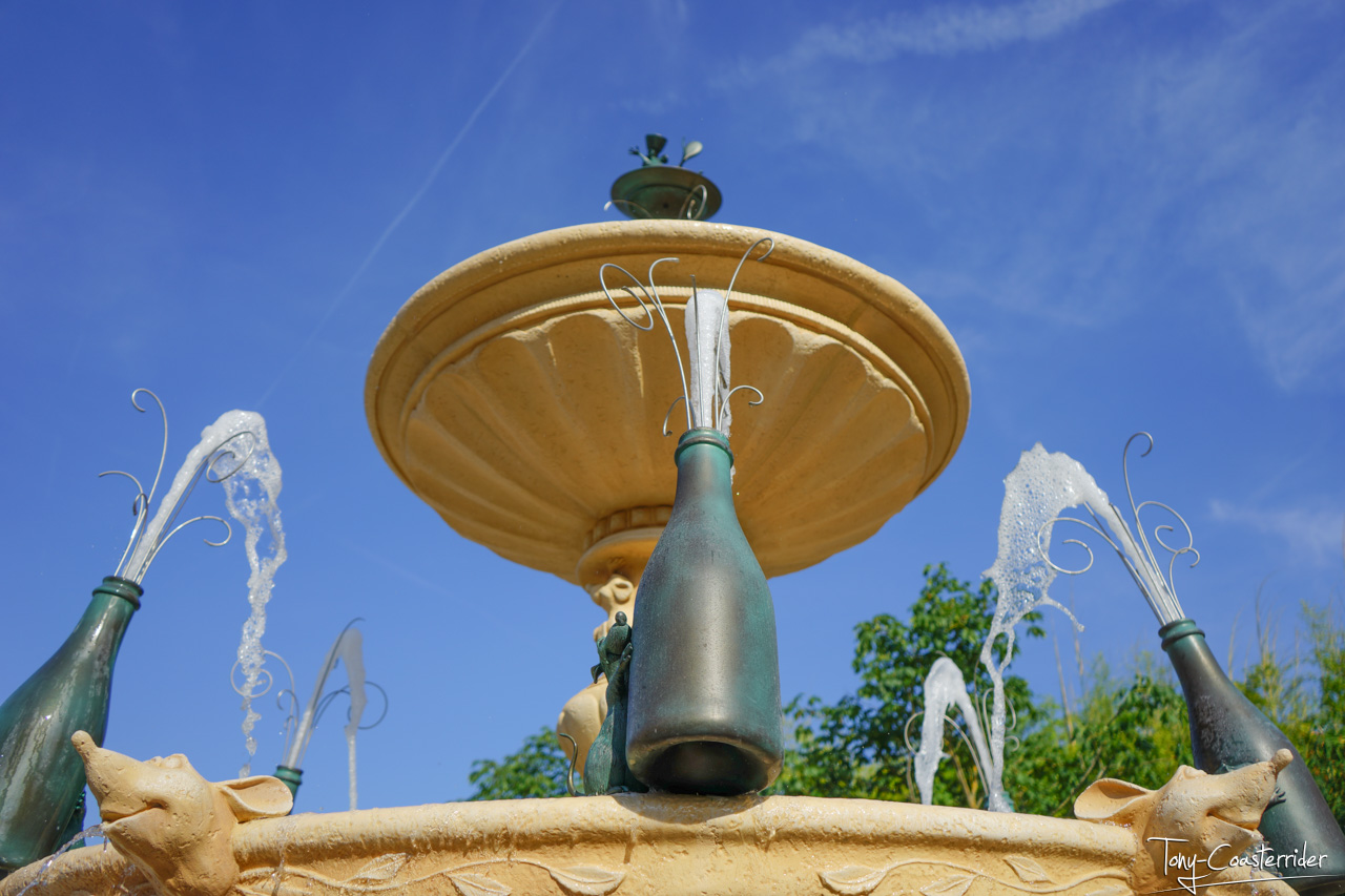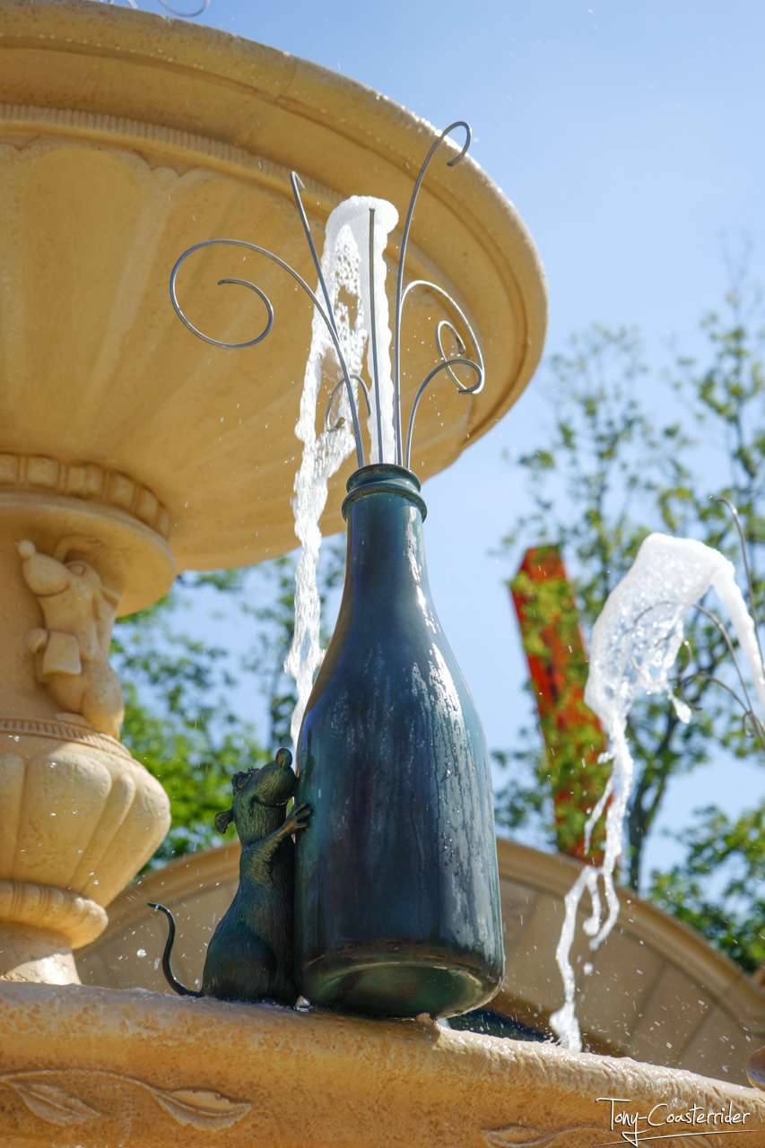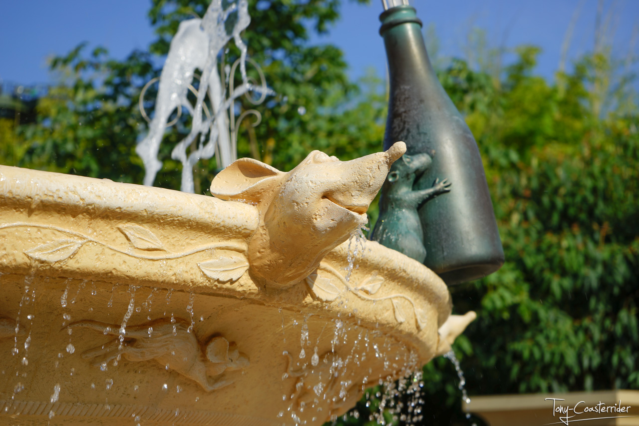 On n'y manque pas la fontaine, plutôt belle et originale, qui y trône en face de l'entrée du ride pas trop trop loin, ni trop trop proche.