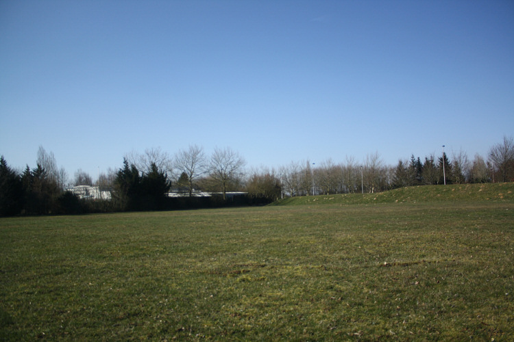 Un grand champ, celui se trouvant devant l'entrée/sur le parking.