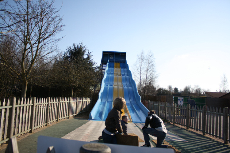 Un des plus grand "ride" du coin, les toboggans ! On se disait qu'il faisait froid par ici, mais grâce à ça, on a personne pour jouer = pas d'attente ! Je n'imagine pas en été hein…