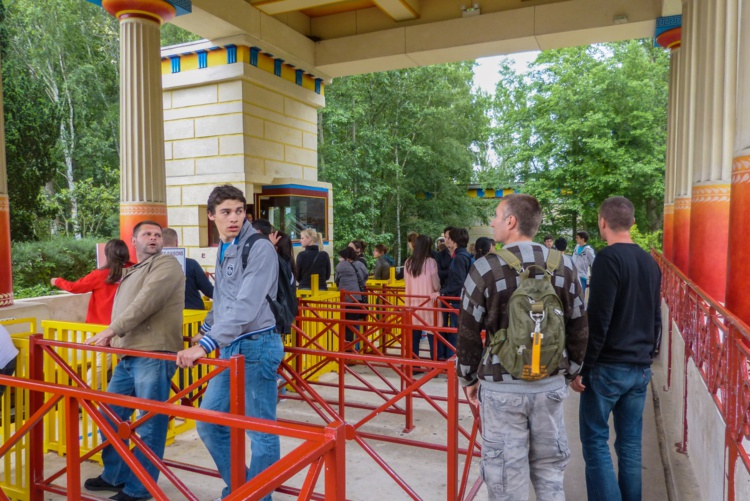 Comme dit précédemment donc, Léo et moi avons choisi le first row pour ce tour, car la file spéciale était justement fermée. La file débitait donc sur les 8 rangées entières. Le moment qu'il faut profiter pour bénéficier de la magnifique vue d'inverted, bien que, ouverte ou pas, la file pour first row était créée par les visiteurs. x) L'attente aura été plus courte que prévue quand même, et Topper et moi aurons eu la rangée que pour nous deux en plus.