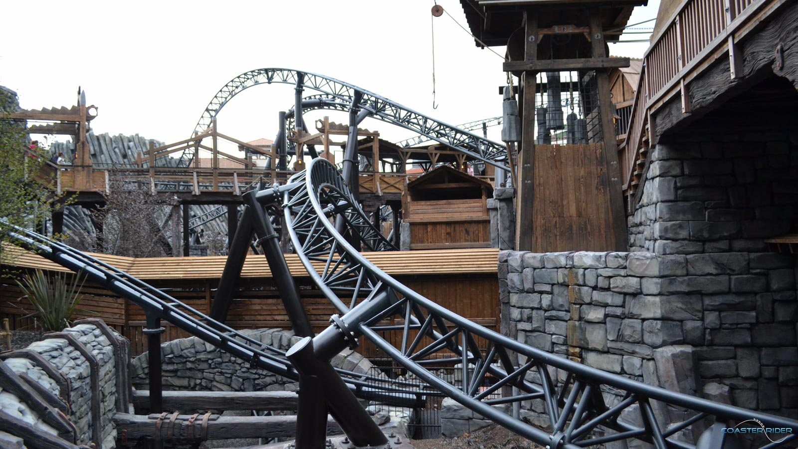 Courage, courage…N'ayant d'autre choix que de rester patient, c'est là qu'on admire comment se présente le coaster : c'est un véritable sac de noeuds ! Le layout ne prend pas forcément beaucoup de hauteur comme Black Mamba, mais les rails s'entremêlent d'un virage à l'autre jusqu'à se demander dans quel sens arrive le train.