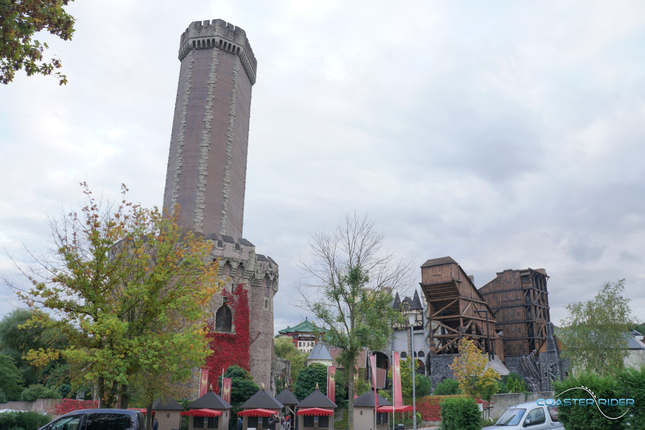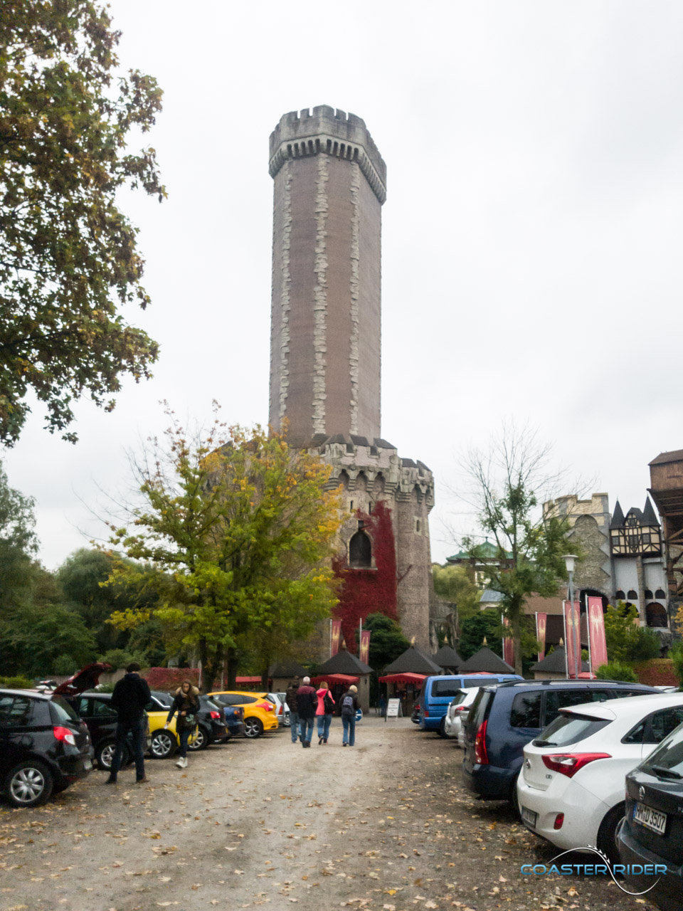 Une grande tour de château visible depuis un parking ? Vous êtes bien à Phantasialand. 🙂 (Je dis bien un parking car ils en ont on ne sait combien. 🤓)