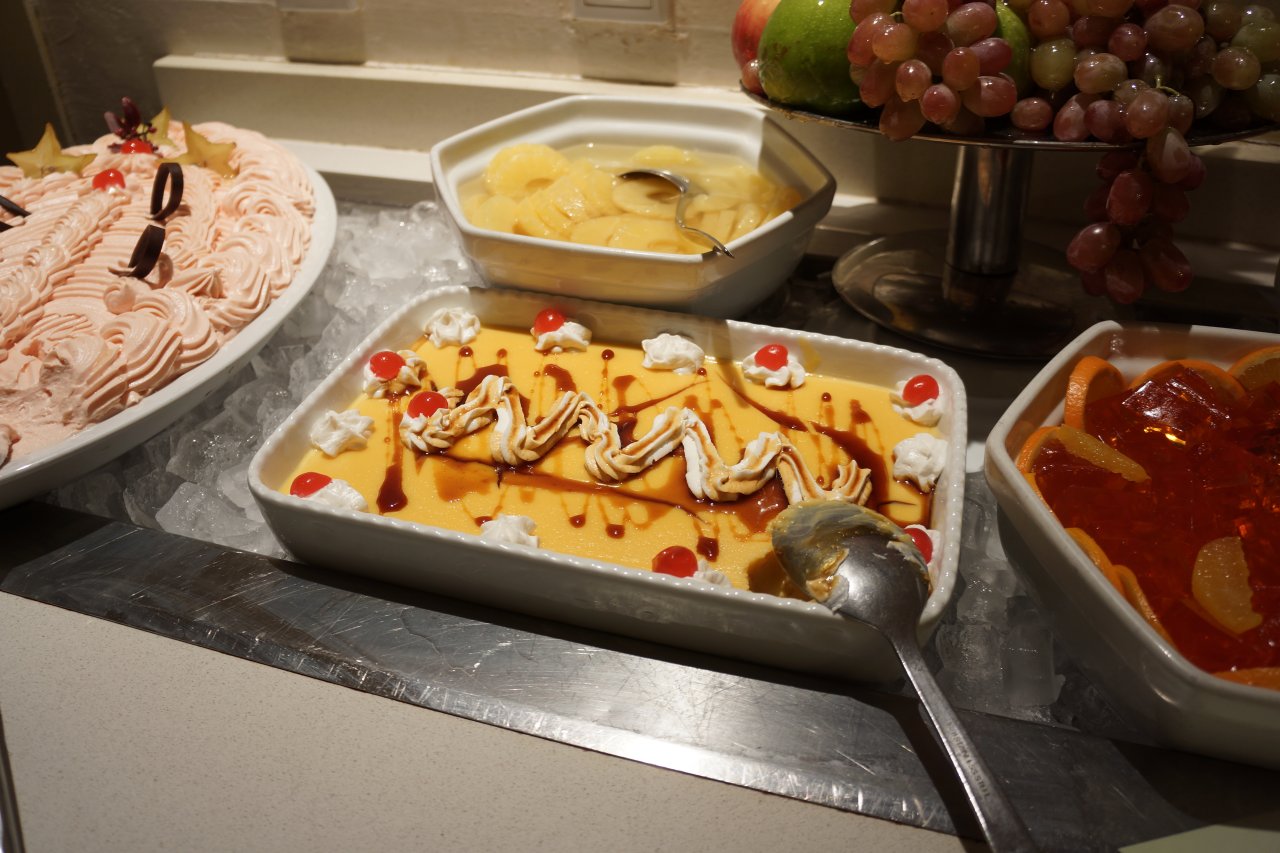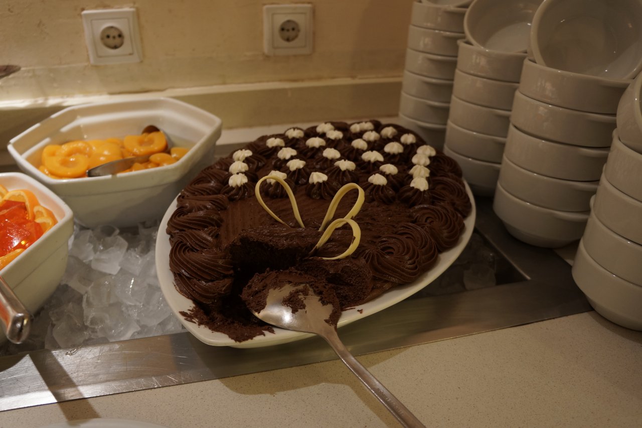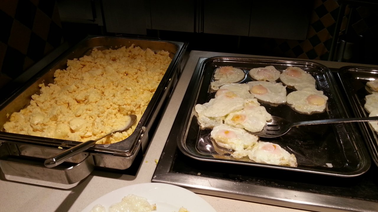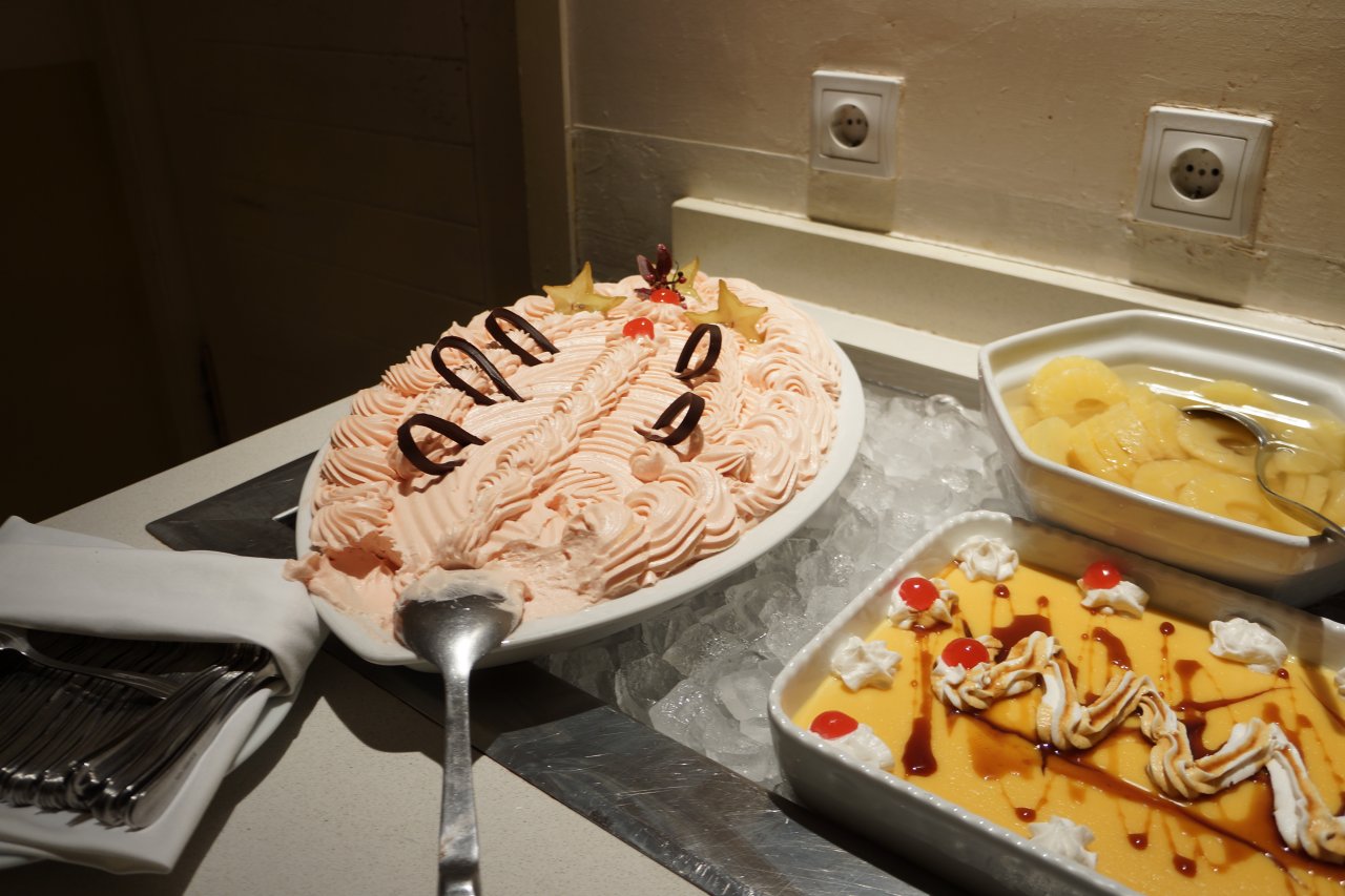 Mon pêché mignon ! =9 J'ai quand même beaucoup moins abusé que la dernière fois, parce que j'en ai gardé un pas très bon souvenir, haha. x) Alors, le petit-déjeuner était plus tolérable que le menu la veille, mais Caribe remporte quand même sur la qualité et la quantité. Parce que franchement, avec le monde qu'il y avait en plus, vive la circulation, sans parler des mioches, pfff… x)