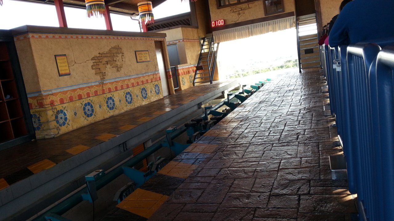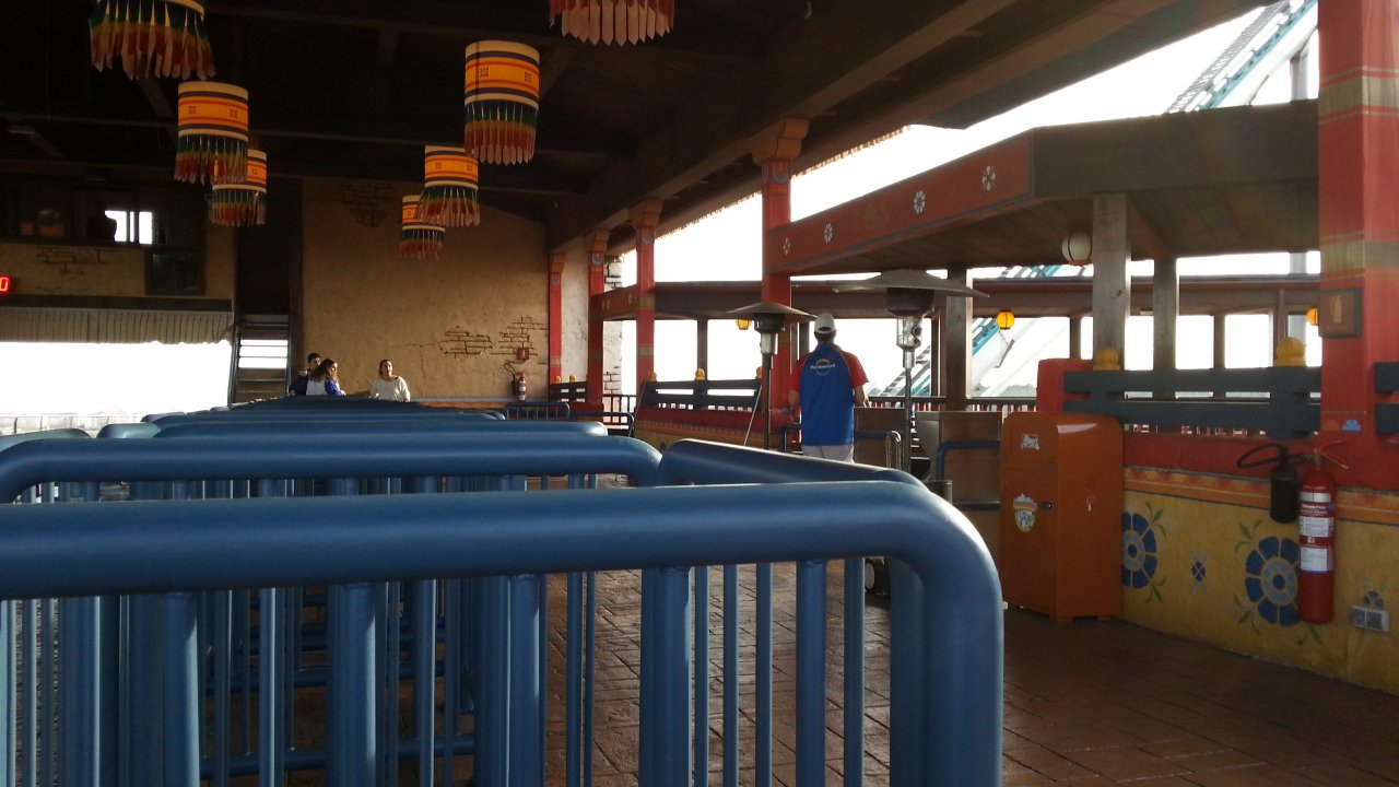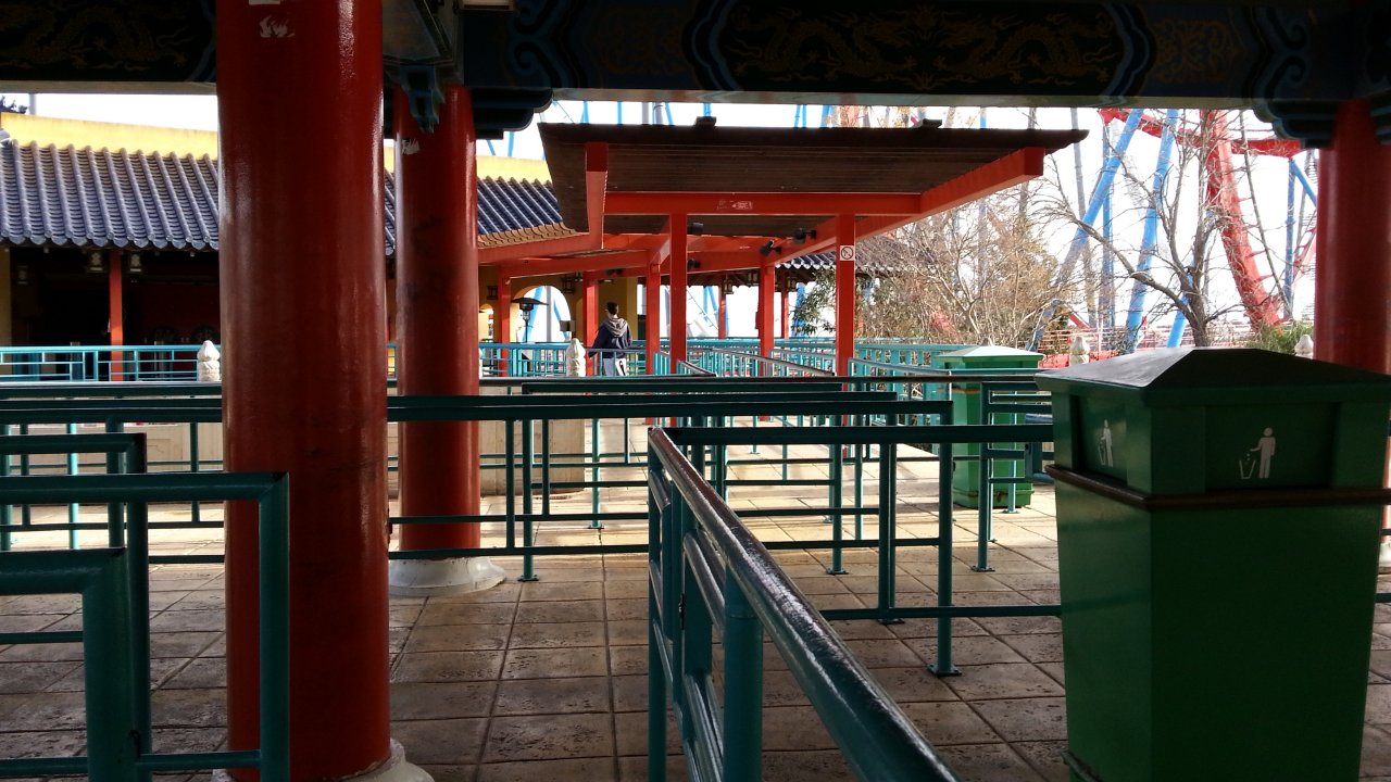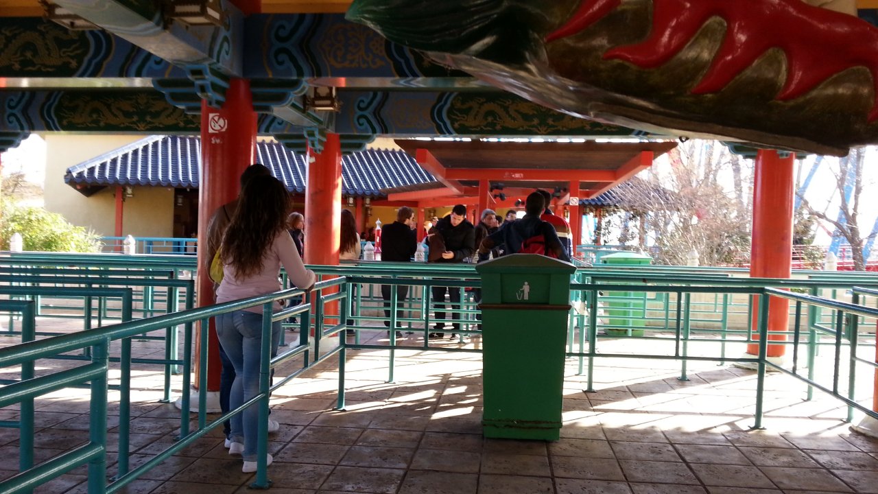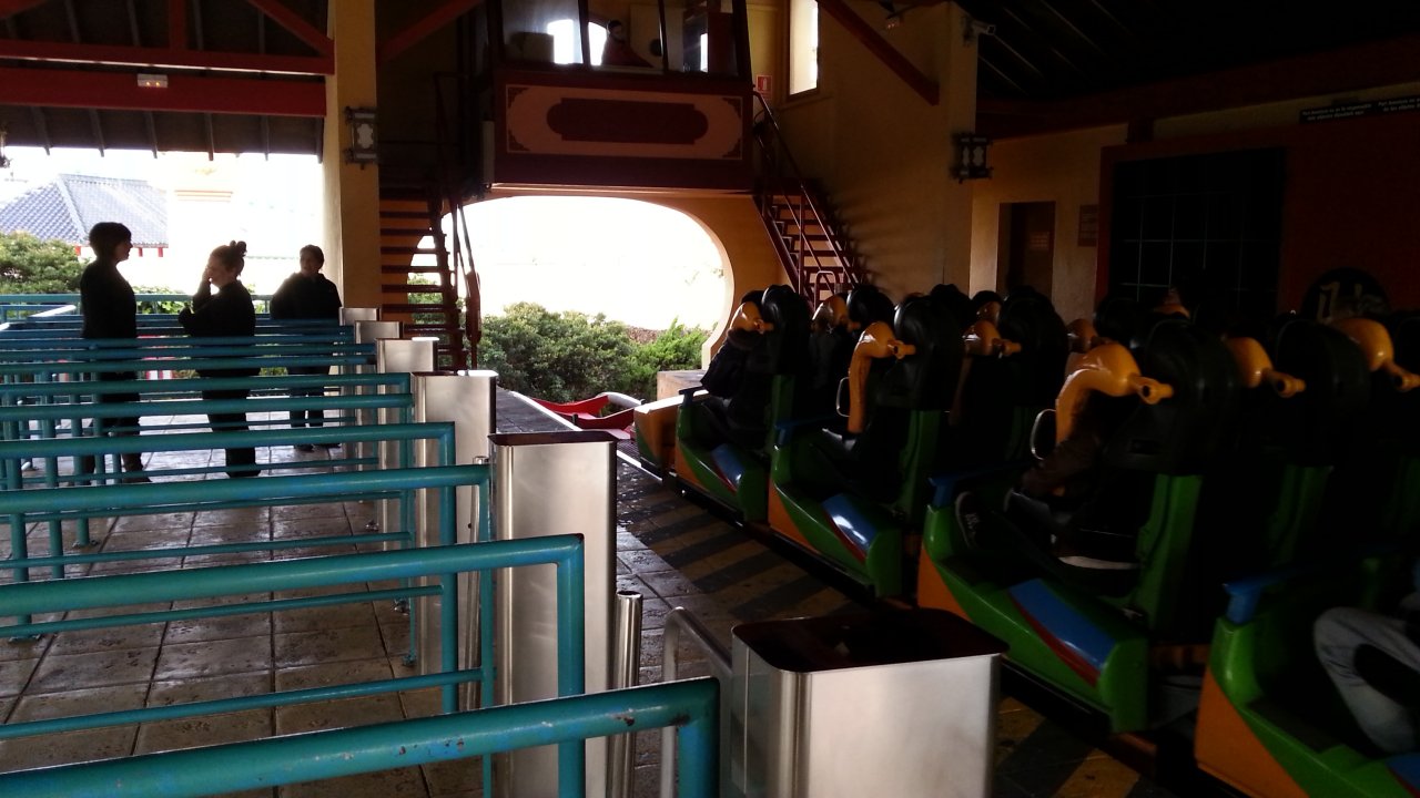 Ca attendait un peu, donc. Mais c'est normal : aujourd'hui, et sans doute sur tout le week-end et sur les autres rides : gros coasters tournant qu'à un unique train. Alors, voilà, n'y avait pas de monde, mais ça faisait attendre un chouya. Vraiment qu'un chouya, même avec ce que l'on voit.