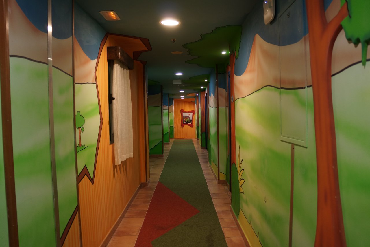 C'est coloré joyeux ici ! En plus, les couloirs sont plus grands que les nôtres où on est. x)