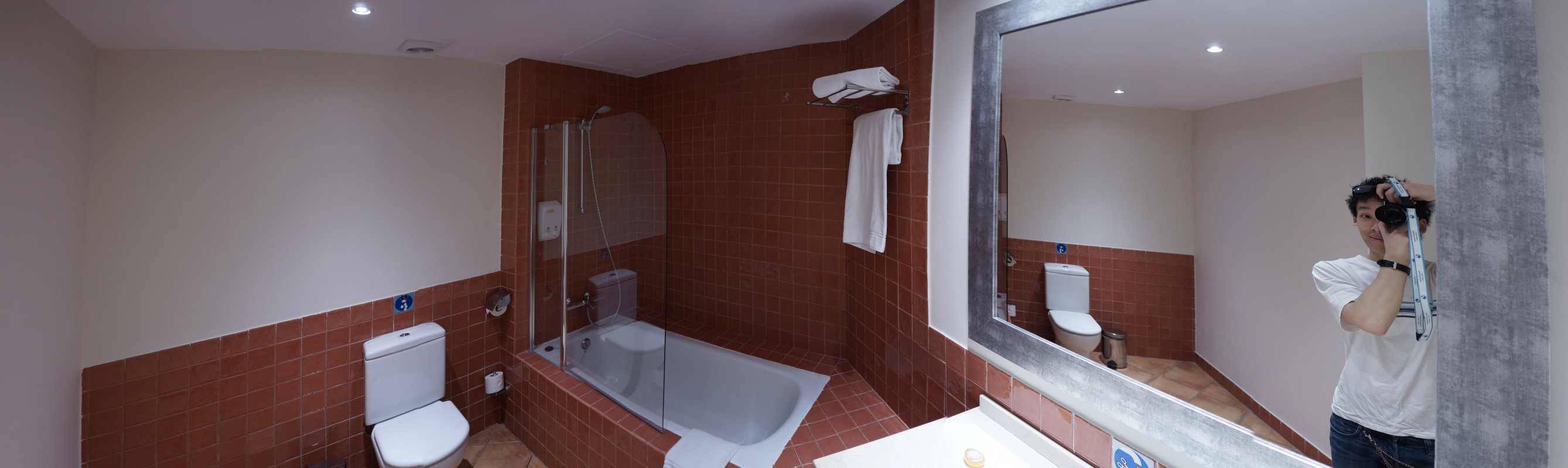 La salle de bain possède une surface largement plus grande que celle de notre ancien hôtel de ce parc, par contre. 🙂