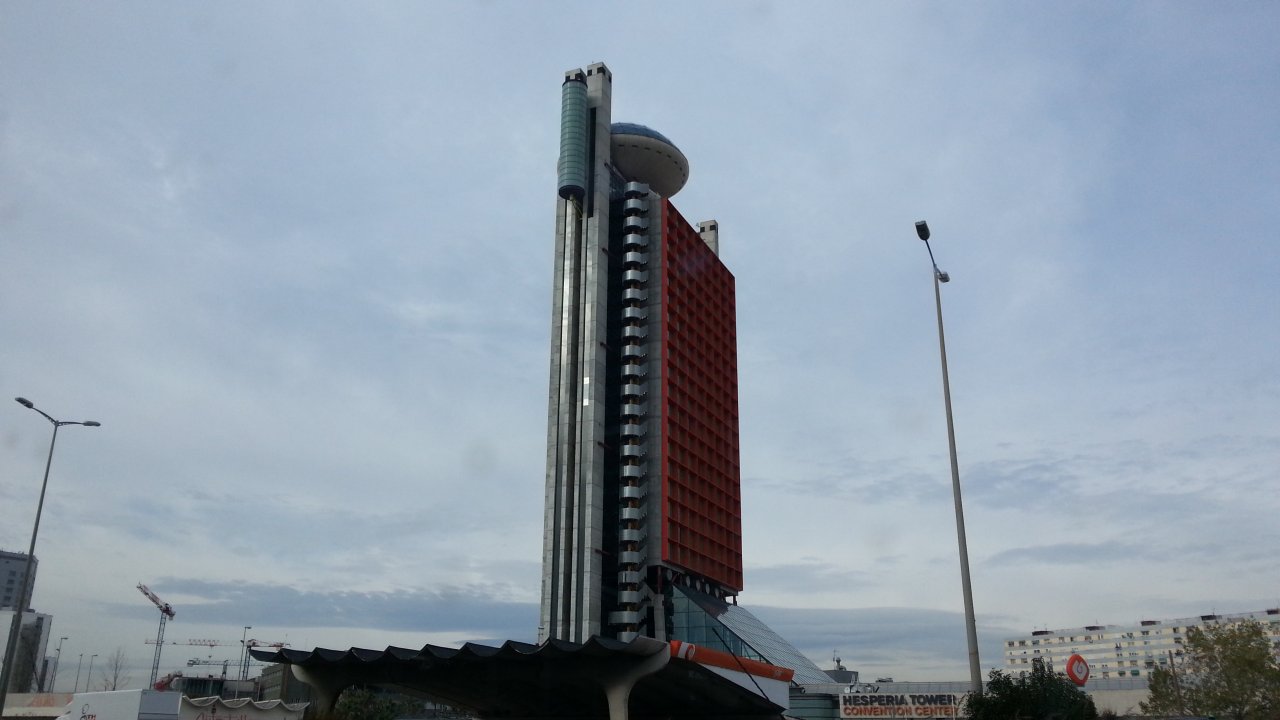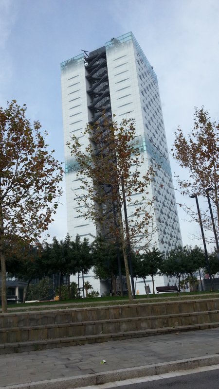 En plein trajet du bus L81 en direction de Barcelone. Y a un OVNI au sommet de ce bâtiment. x)