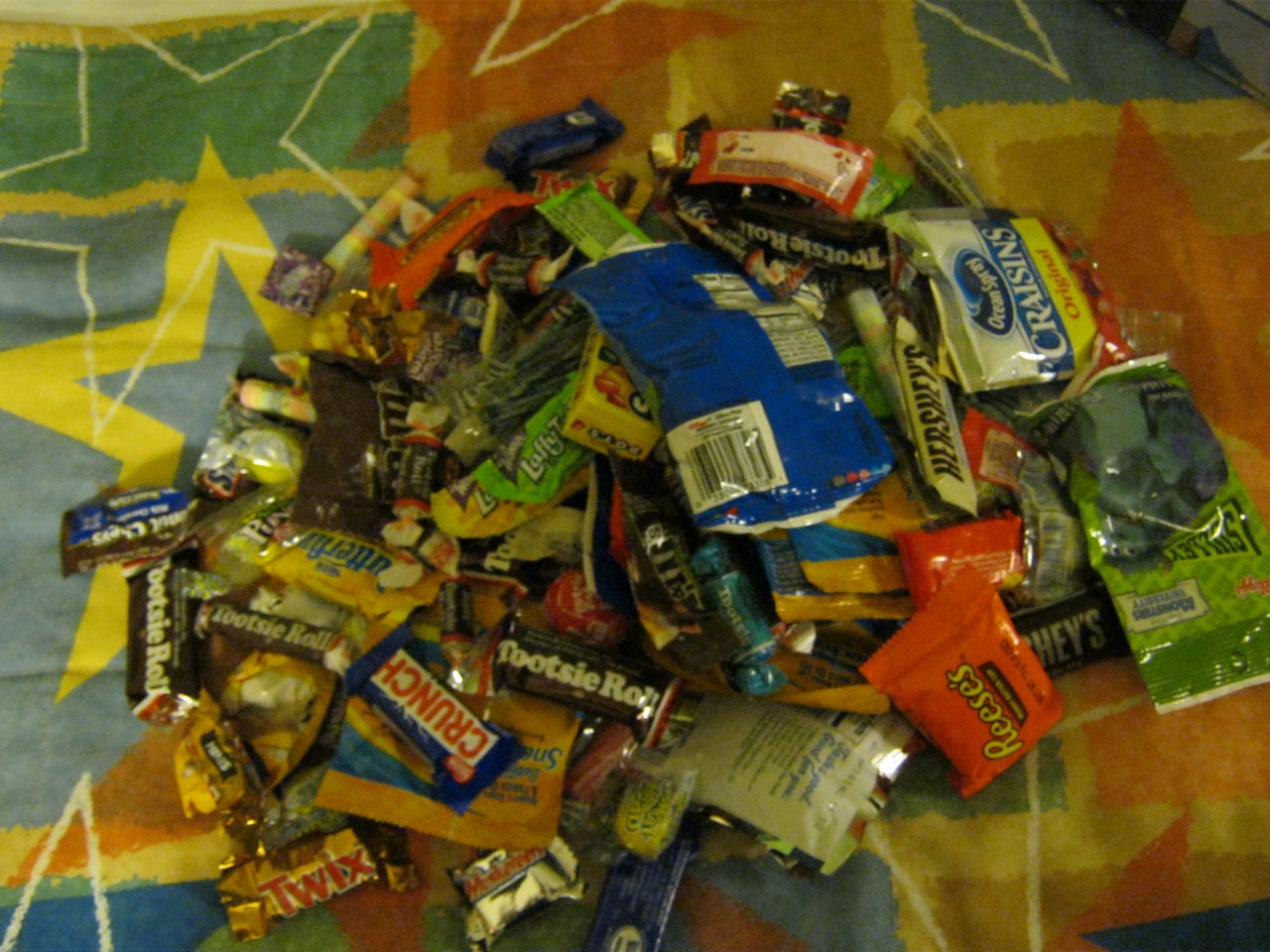 Ah oui : côté bonbons, on avait donc 4 sacs remplis à mort qui équivalait à 1,5 kg environ (de petits bonbons bien sûr). Si ce n'est plus d'ailleurs… Enfin quoi, c'était très lourd à porter ! 😜