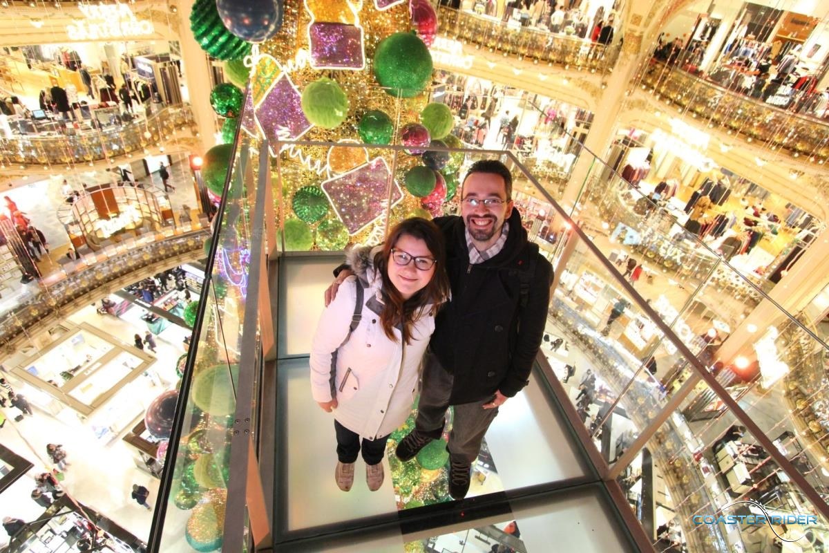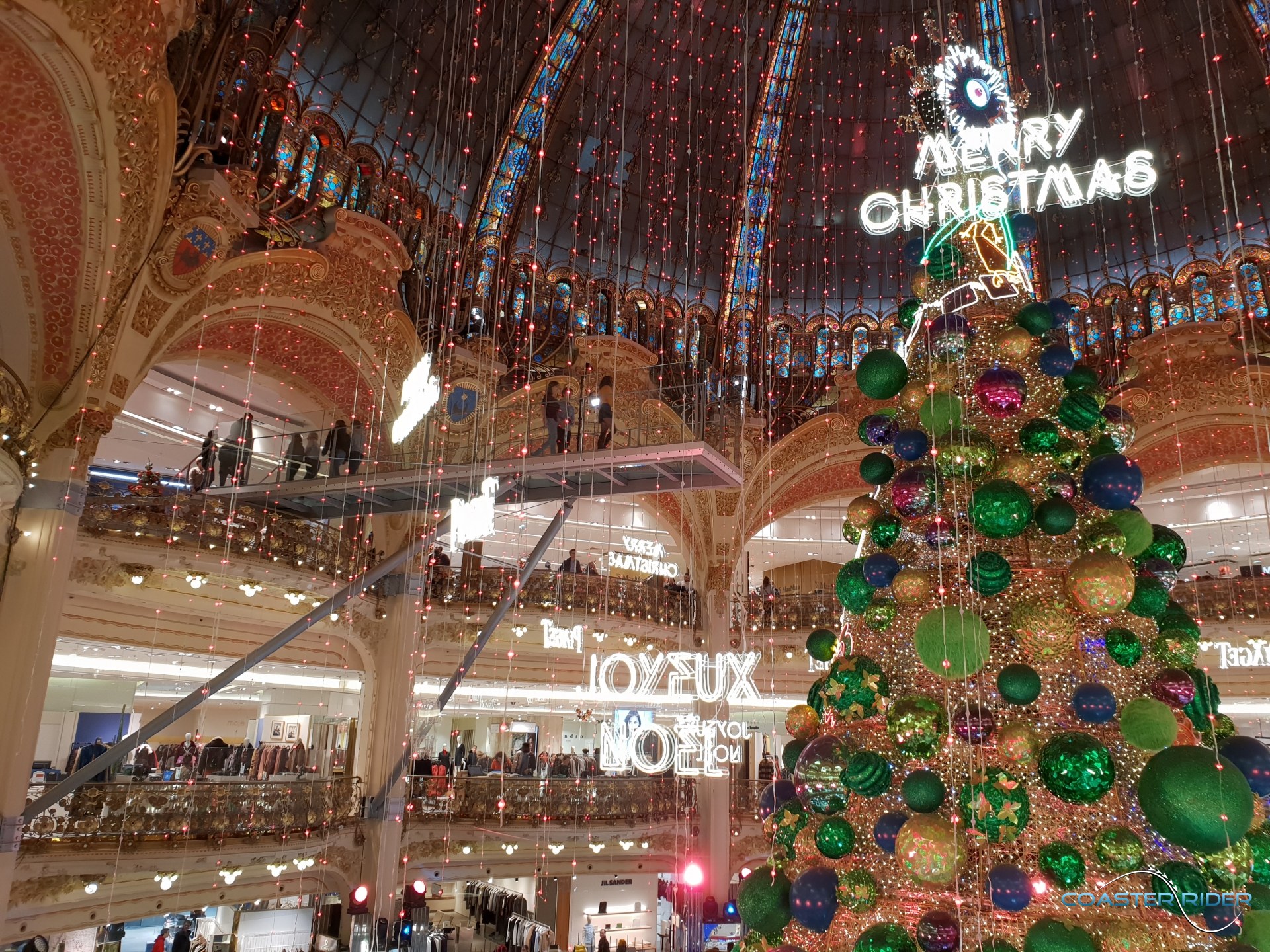 Et aussi les Galeries Lafayette avec ses traditionnelles vitrines, et surtout cette année, une passerelle en verre qui vous amène près du sapin géant et vous permet une chouette photo.